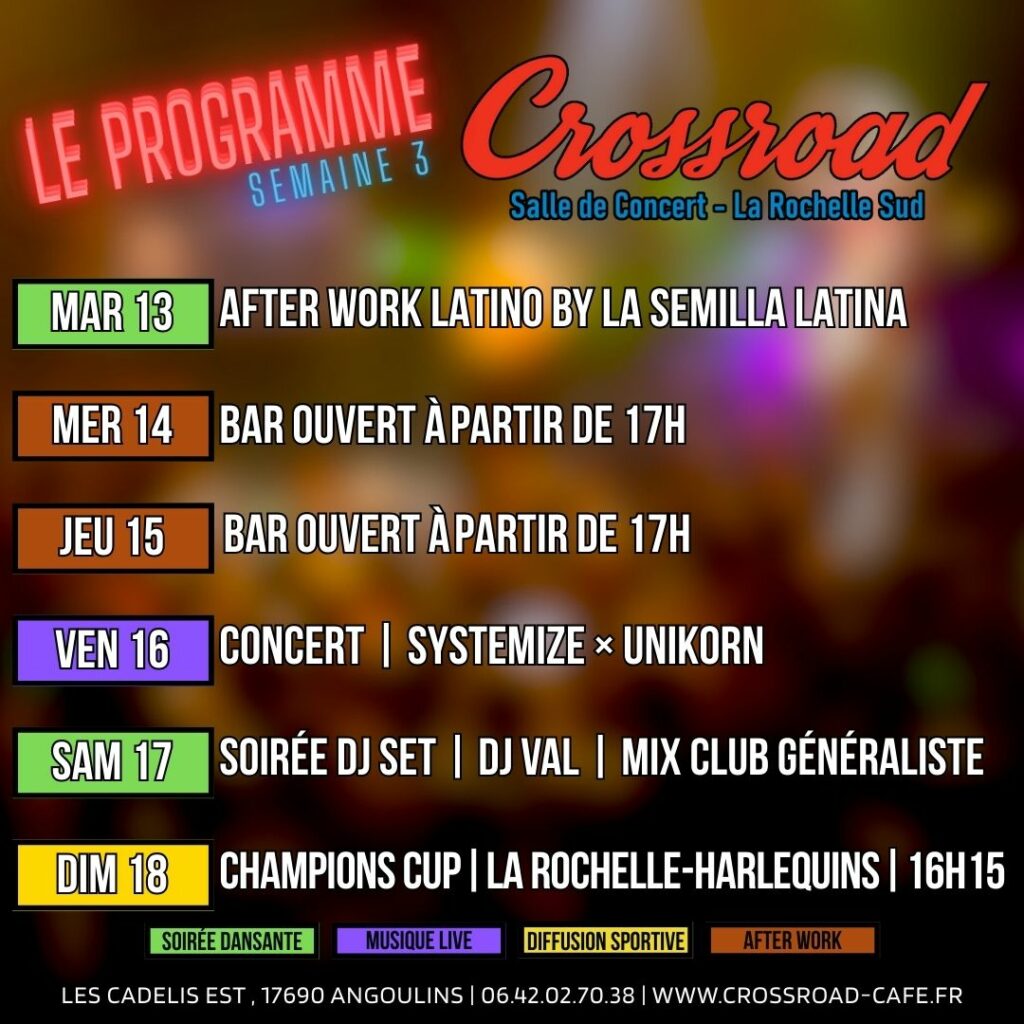 officiel du Crossroad vous accueille quant à lui du Mardi au Samedi à