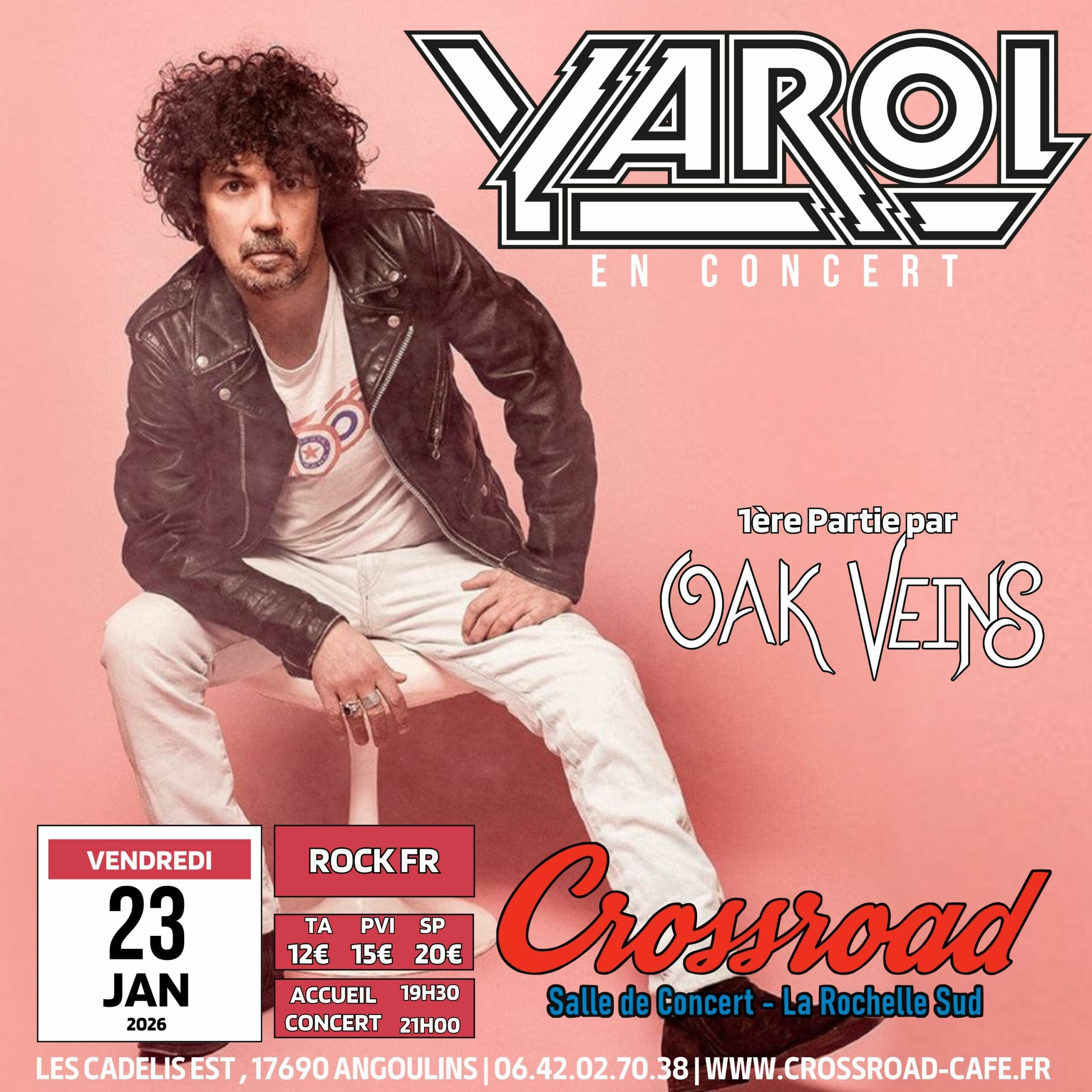 Yarol POUPAUD sera sur la scène du Crossroad ce Vendredi 23 Janvier ! Un sacré moment de rock, avec Oak Veins en première partie pour une soirée qui envoie du bois !